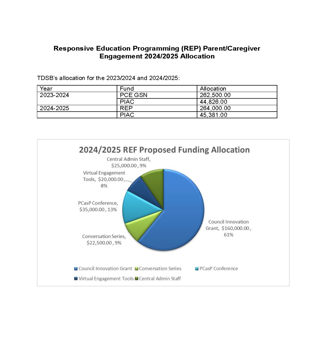 For the 2025-2026 school year, TDSB has received an allocation of $264,000 for projects that demonstrate a commitment to respecting the role of parents/caregivers in students’ educational experiences.
